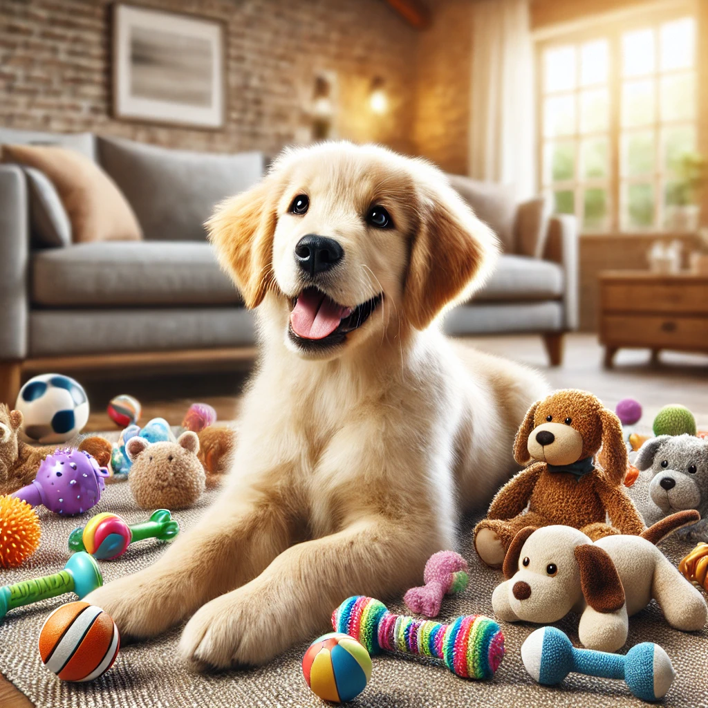 강아지의 스트레스 해소와 치아 건강을 위해 장난감은 필수적이다. 종류에 따라 씹기, 활동, 두뇌 자극용 장난감이 있다.